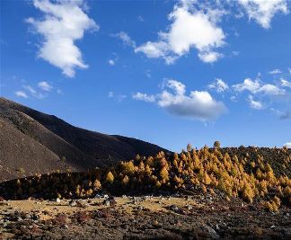 深秋時節(jié),晴空、群山、秋葉在高原清澈的天光下勾勒出川西鄉(xiāng)城縣一幅幅美麗畫卷。