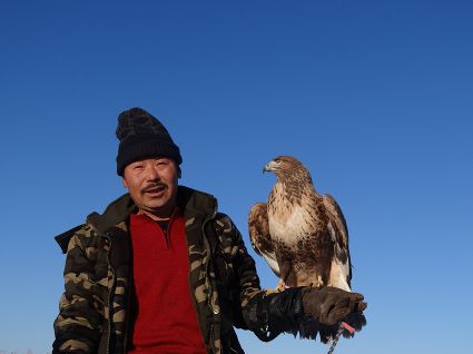“古時(shí)候鷹做為人類的朋友,幫助主人捕野兔捉野雞?!庇?xùn)鷹人說。