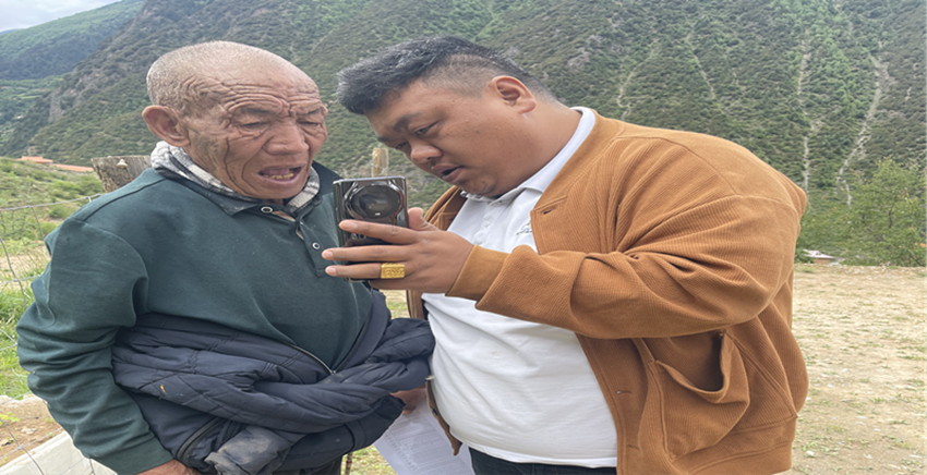 本網(wǎng)訊 “阿克,德姆額應,今天來看看您,順便幫您做養(yǎng)老保險認證!”活動中,白玉縣熱加鄉(xiāng)勒沙村第一書記一邊拿著手機,耐心幫老人完成養(yǎng)老保險資格認證,一邊與老人親切交談,詢問老人近期身體狀況,叮囑老人保重身體,有需要幫助及時電話聯(lián)系。