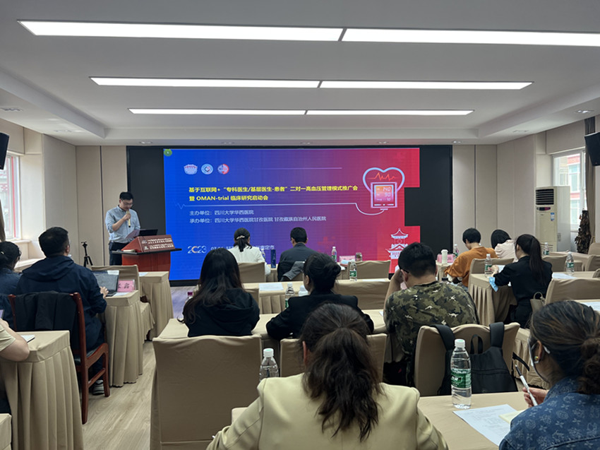 本網(wǎng)訊 7月1日,由四川大學(xué)華西醫(yī)院主辦、四川大學(xué)華西醫(yī)院甘孜醫(yī)院承辦的基于互聯(lián)網(wǎng)+“專科醫(yī)生/基層醫(yī)生——患者”二對(duì)一高血壓管理模式推廣會(huì)暨OMAN-trial臨床研究啟動(dòng)會(huì)在康定舉行,來自四川大學(xué)華西醫(yī)院的專家們以學(xué)術(shù)講座與探討的形式,圍繞高血壓管理新模式和OMAN-trial臨床研究等相關(guān)內(nèi)容進(jìn)行詳細(xì)深入的探討,為廣大醫(yī)師帶來了一場(chǎng)豐富精彩的學(xué)術(shù)盛宴。