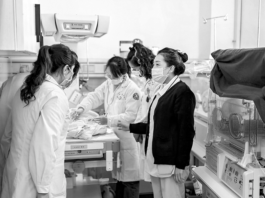 醫(yī)療幫扶隊(duì)員為新生兒檢查病情。圖片由丹巴縣人民醫(yī)院提供
