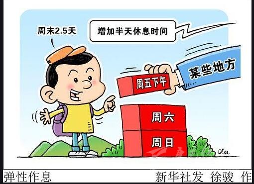 “周末2.5天”彈性作息政策,就是在周六、周日外,增加周五下午半天休息時間。這一政策各方怎么看?落地情況如何?