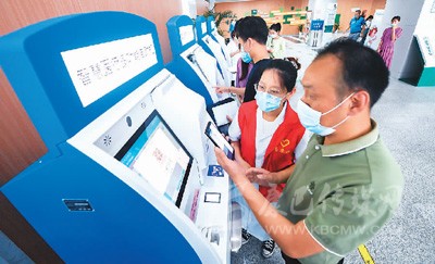 居民在浙江省湖州市吳興區(qū)人民醫(yī)院使用智慧醫(yī)療多功能自助機(jī)支付醫(yī)藥費(fèi)。新華社記者 徐昱 攝