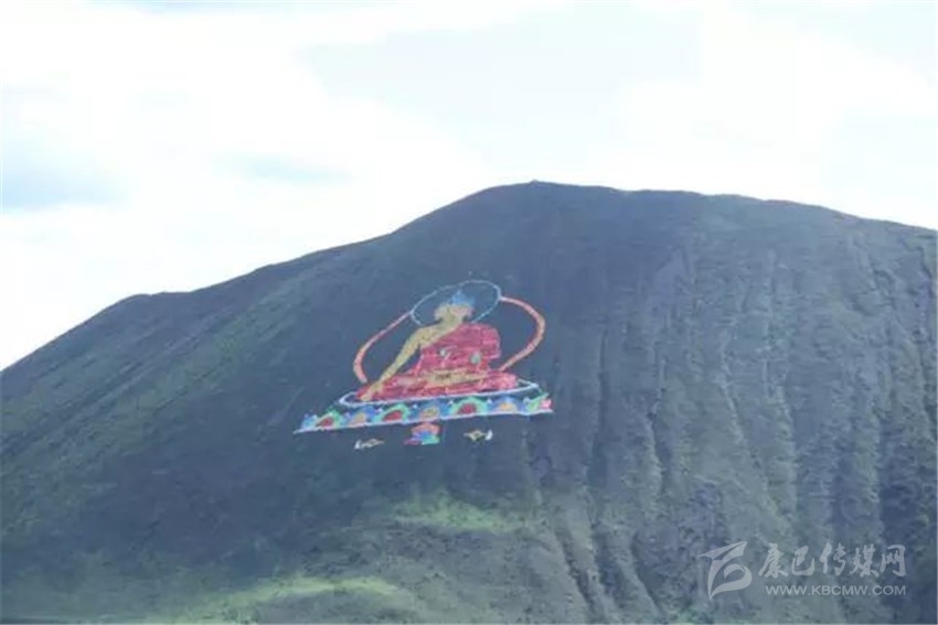 看,佛主正在向我們微笑,這尊巨大的佛像是由然梯寺的活佛使用4萬(wàn)根經(jīng)幡,在沒有使用任何輔助工具的情況下花費(fèi)一個(gè)月的時(shí)間創(chuàng)作而成。每當(dāng)風(fēng)吹過(guò),大佛就會(huì)隨風(fēng)飄舞。就如同在向四面八方散發(fā)佛光一樣。