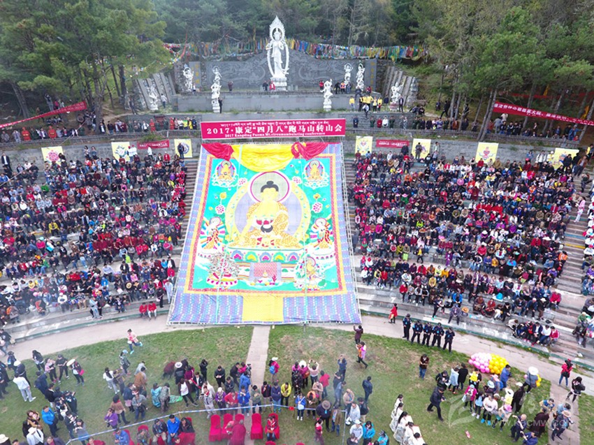 5月3日的康定祥云朵朵、春風(fēng)動(dòng)人,跑馬山上更是梵音陣陣、歌舞歡騰、人潮涌動(dòng)、站無(wú)虛席;一年一度的康定“四月八”跑馬山國(guó)際轉(zhuǎn)山會(huì)在此火爆上演,數(shù)萬(wàn)中外游客和藏區(qū)群眾歡聚在此,共享文化盛宴、共續(xù)民俗經(jīng)典,用歡歌踏舞祈福康定。