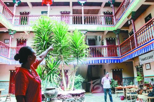 記者在“安卡兒民族莊園”看到,每天游客絡(luò)繹不絕,游客們不肯錯(cuò)過(guò)的是這里的鄉(xiāng)愁。眼前的“安卡兒民族莊園”是一座藏式三層小樓,以嘉絨民居為主格調(diào)。從外觀看,這棟三層小樓與村里其他農(nóng)家小院沒(méi)有多少差異,但仔細(xì)端詳,其所有窗戶(hù)大小、高低不一,透出與眾不同的設(shè)計(jì)風(fēng)格。走進(jìn)院內(nèi),這座藏式小樓的走廊外側(cè)裝著木欄桿,欄桿下面掛著藍(lán)綠相間的布條,以及大院中央郁郁蒼蒼的盆景,讓人美不勝收。