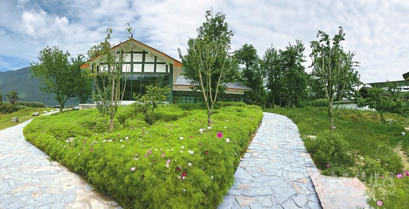 四畝田園酒店位于丹巴縣聶呷鄉(xiāng)高頂二村,其背依卡帕瑪群峰,面向墨爾多神山,是甲居藏寨的后花園。酒店精美的藏式外觀搭配了全玻璃的落地窗,讓美景無處不在眼前。房內(nèi)干凈整潔的大床、現(xiàn)代簡約的裝飾盡顯舒適與輕松。門廳內(nèi),古色古香的茶室無一不彰顯出店家的文雅與大方。房前屋后,姹紫嫣紅的花兒花香四溢,五彩的蝴蝶紛紛在花叢中翩翩起舞。后院的草地里,繁花盛開,一座小亭子、一架秋千、幾張?zhí)梢?,這是心中的詩意和遠(yuǎn)方,是“采菊東籬下,悠然見南山”的怡然自得和超凡脫俗。
