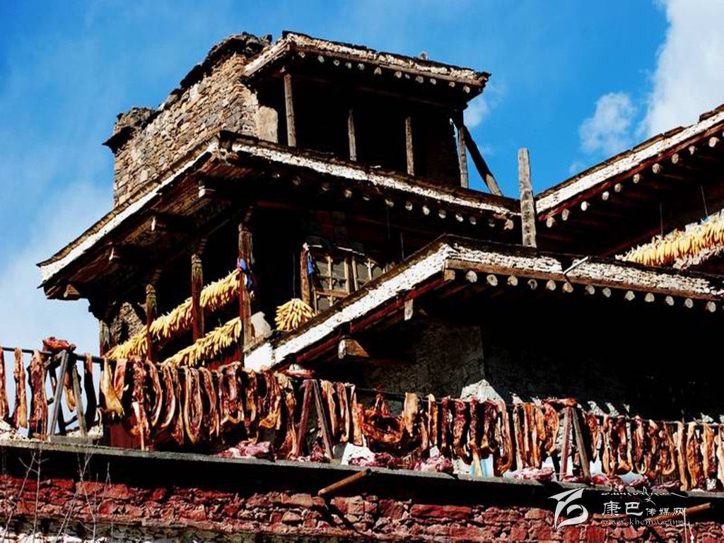 嘉絨藏族年到來之前幾天,丹巴藏寨格外耀眼美麗。寨房的主人們都依照傳統(tǒng)習(xí)俗,以當?shù)氐?ldquo;白泥巴”為主要原料,通過配方煎制成白色染料,精心涂染寨樓墻面,并用白灰在墻面上繪畫出天、地、日、月、星和各種動物圖案和宗教圖案,使整個藏寨披上潔白的盛裝。每年冬月12日就到了嘉絨藏族年大年三十,這天,山寨家家戶戶面滿柜、酒滿壇、水滿缸、柴滿棚,歡歡喜喜過迎新年;宰殺肥豬腌制香豬腿、制作豬膘,擺上酒席、跳上鍋莊祝福新年。