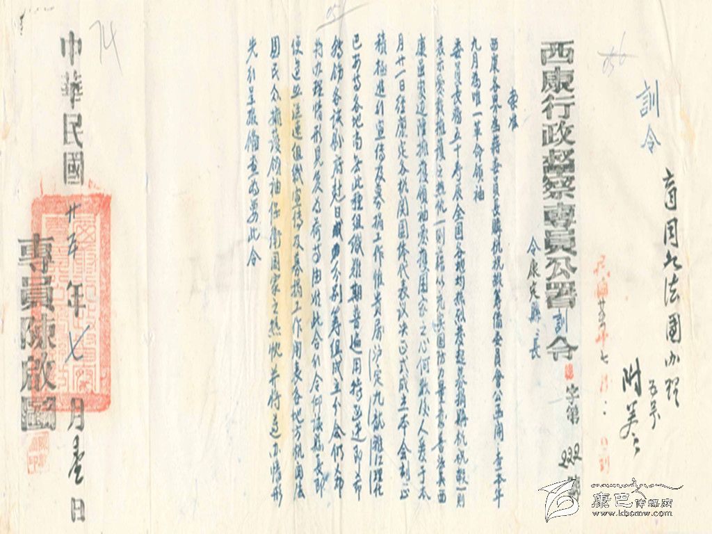 這是一份在1936年7月,由西康行政督察專員為動員西康各界民眾捐款購買飛機發(fā)出的訓令;康定城中及西康省康屬地區(qū)各縣民眾捐款購飛機的活動一直持續(xù)到1940年,據(jù)1940年4月的《西康新聞》,在15日、16日兩天連續(xù)刊登“西康省中國兒童號飛機捐籌募款數(shù)目表”,公布了西康省民眾捐款購飛機的結果。