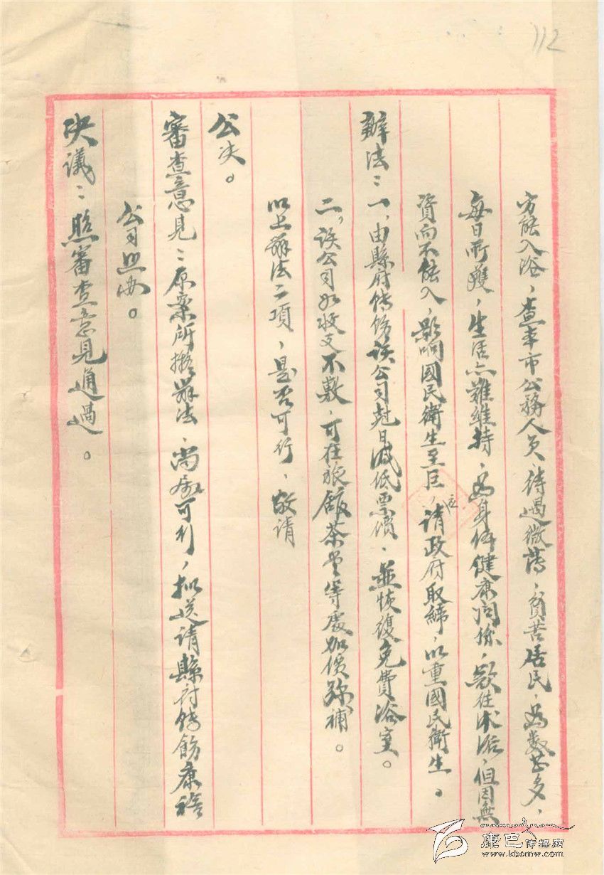 另一份舊檔案也有趣,這是一份由一名參議員提出的提案,內(nèi)容是由于生活在康定的人、包括公務(wù)人員在內(nèi),因?yàn)槭杖肷?,生活困難。請(qǐng)求康定縣政府出面給經(jīng)營(yíng)二道橋的“康裕公司”提出二道橋洗浴不收費(fèi),經(jīng)營(yíng)方的虧空可以在其它經(jīng)營(yíng),如餐飲獲得的利潤(rùn)中解決。參議會(huì)上還通過了這個(gè)提案,說是“原案所擬辦法尚屬可行,擬送請(qǐng)縣府轉(zhuǎn)飭康裕公司照辦”。這份提案再無下文,康裕公司是不是照辦了,不得而知,就是參議會(huì)是不是轉(zhuǎn)給了康定縣政府也不得而知。以今天的眼光看,這份提案有滑稽、有趣的一面,卻也有關(guān)注民生而十分無奈的一面。