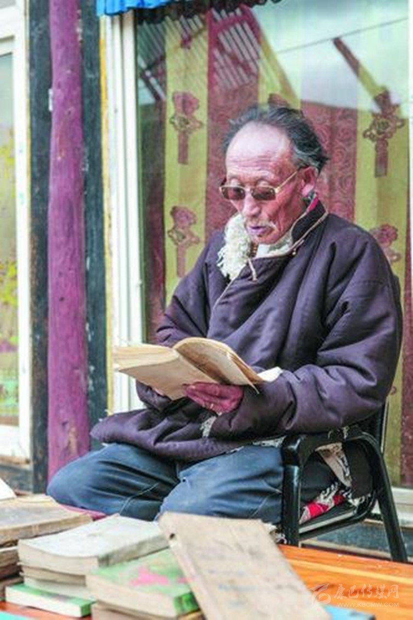 余音繞梁、鳴金收兵,天造地合的佳話叫人回味無窮。面對還沉浸在烽火邊關(guān)與兒女情長中的老人,真有一種不忍打擾的感動。幾十本從八十年代到二十一世紀(jì)由西藏、甘肅、青海、四川等民族出版社出版的各種藏文《格薩爾王傳》書籍,雖然有的邊角磨損嚴(yán)重,有的封面封底用塑料薄膜一針一線串起,卻沒有一本掉頁,更不要說有污漬灰塵了,揣摩著那一本本厚薄不一的書籍,如數(shù)家珍般逐一介紹書中的內(nèi)容,就算間隔30多年都還記得買書時的場景,足見老人對它的情有獨(dú)鐘。