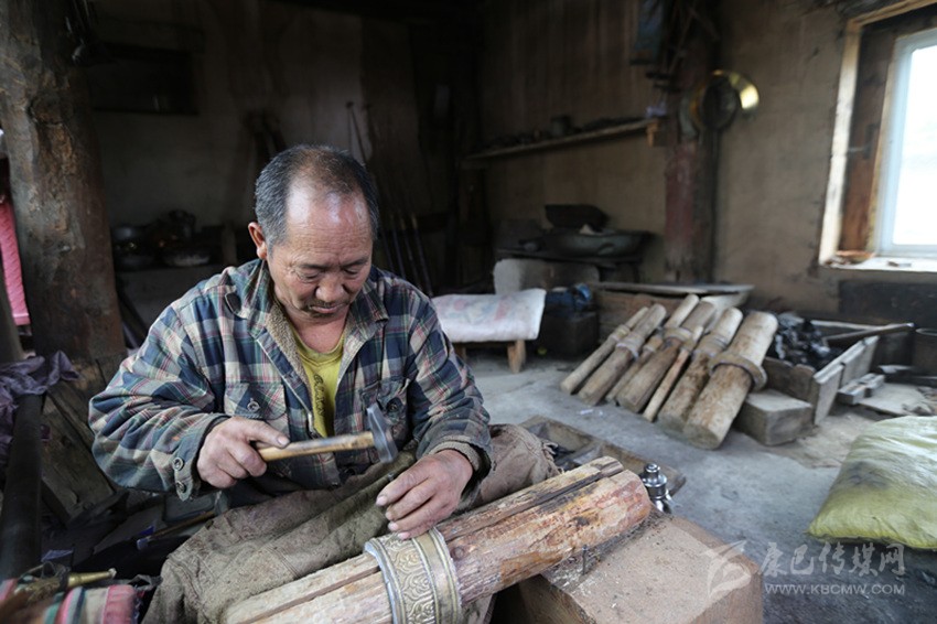 尼瑪師傅介紹到,鏨花完成后的藏刀殼還要經(jīng)過打磨拋光、去污、點藍上翠等工序后,藏刀殼才算制作完成。整個藏刀在打造中,必須要專心致志、全神貫注,數(shù)萬次的錘打才能完成一件純手工作品,制作一把手工藏刀是一件耗工時,耗體力的工作,沒有定力的人是打造不出一件完美的作品。