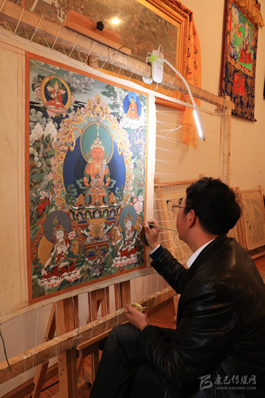 在十多年的繪畫生涯中,著著接觸了很多畫師,經(jīng)常與他們一起交流,并在不斷的摸索與總結(jié)中讓自己的技藝得到不斷提升,為了潛心作畫和讓更多愛好唐卡畫的青年學習唐卡畫,家在農(nóng)村的著著在城里租房開設(shè)了現(xiàn)在的畫室,并招收了徒弟。目前,著著歷時四個月以宗教為題材潛心創(chuàng)作的唐卡畫《釋迦牟尼》,已投送到第二十屆杭州西湖國際博覽會中國民間藝術(shù)產(chǎn)業(yè)示范展會上,他想通過參加展會的方式讓更多人了解被列為非物資文化遺產(chǎn)的藏族唐卡畫和藏民族文化。