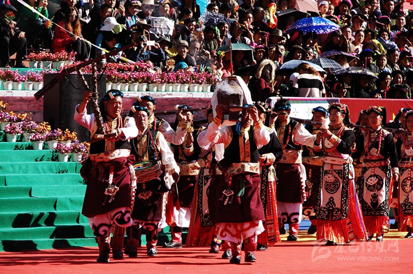 槍舞,嘉絨語中稱為“訥沖呷兒”,主要是在祭祀、集會、節(jié)日時表演的一種近似于戰(zhàn)術(shù)的舞蹈。在舞蹈中,舞者圍成一個圓圈,手持明火槍,明火槍,是最早的一種真正適于在戰(zhàn)場上為軍事目的使用的火槍。槍膛為一根圓柱形的鐵筒,筒口直徑為三厘米左右,在槍膛底部,有一個小圓孔伸出槍管,為導(dǎo)火管。如耳朵狀,因此也稱為槍耳,主要是用來點火的地方。圓筒固定在堅硬的木托頂端。這種輕火器或者說小型火炮使用的是形狀不規(guī)則的彈丸,即不大的實心彈,它緊貼大粒火藥制成的裝藥,借緊挨導(dǎo)火孔的火繩發(fā)射。