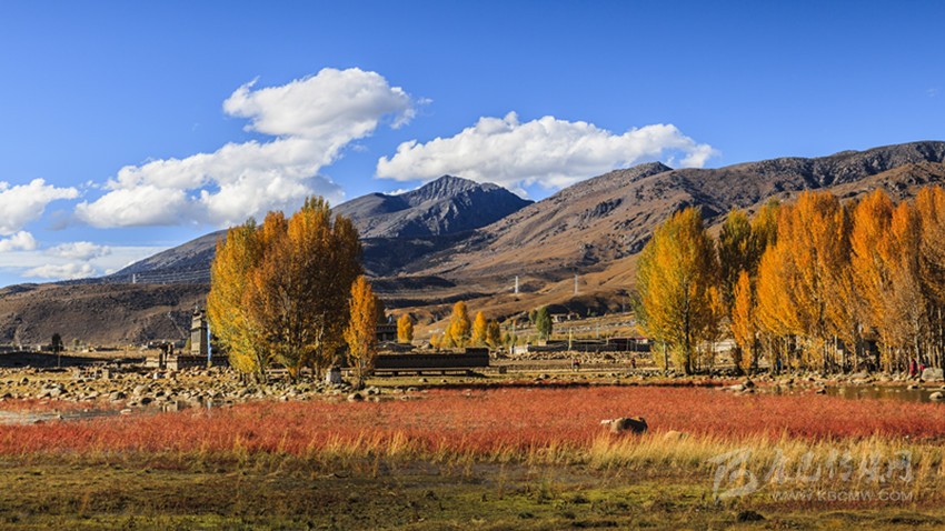 生活的美好在萬(wàn)畝格桑花海里、在山溝溝里巨大的秋陽(yáng)灑落我周身的溫暖里、在公路兩旁的蓮花白緊實(shí)的菜心里,美好的日子是公路旁小木臺(tái)上擺滿(mǎn)的橢圓黃色,青黃的蘋(píng)果,一袋袋牦牛肉干、筍黃色南瓜里,美好在萬(wàn)萬(wàn)棵果樹(shù)、白楊樹(shù)、柳樹(shù)林間。美好是阿媽高原紅的臉蛋兒透出血紅色的笑臉。