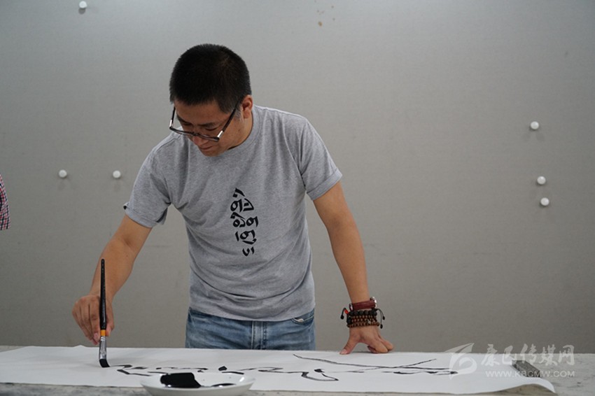耷·瓊培擁有不少身份認證,譬如:“新概念”唐卡創(chuàng)始人、傳統(tǒng)藏文書法藝術(shù)傳承人,歌者、畫家、詩人、學(xué)者,乃至當(dāng)代藝術(shù)家等不一而足。而在他看來,與其“對號”上述任何頭銜,毋寧說自己是唐卡沿襲至今的新時代探索者之一。