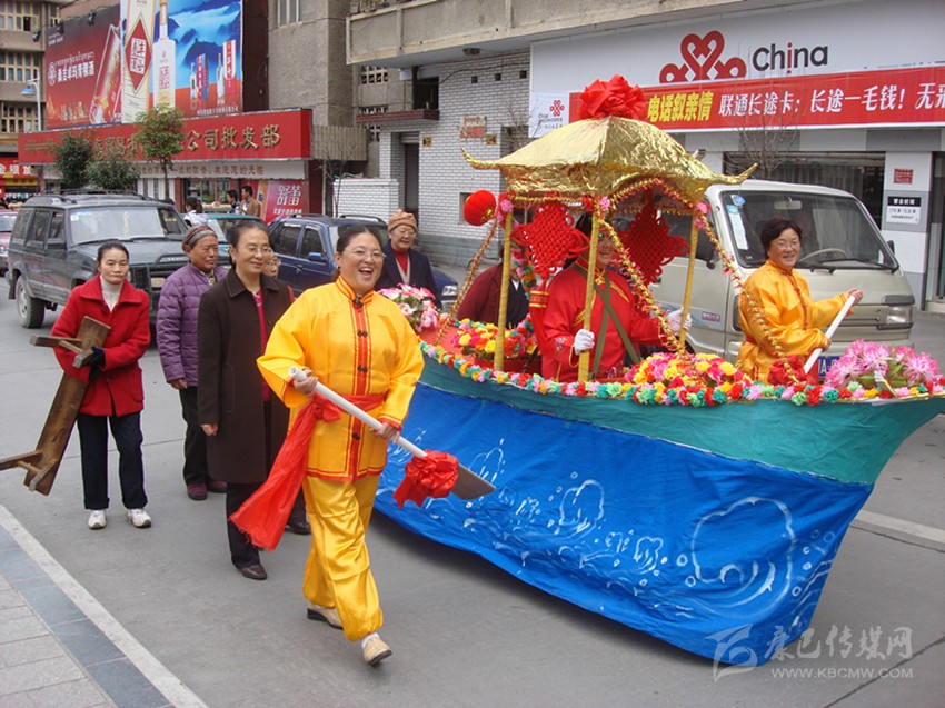 半個世紀風靡康定城的“船燈”、“馬馬燈”、“鬧山鼓”、“扭秧歌”、“笑頭和尚戲柳翠”、“霸王鞭”……整個兒就像老陜過年時的“社戲”場面。大年初一、十五夜“出燈”游街,熱鬧氣氛把整個年節(jié)塞得滿滿的。記得我孩童時見過一次“出燈”游行,不是晚上而是在大白天(叫“出游”)。寺廟喇嘛吹奏佛樂走在前面,接著是“川北”人的川劇鑼鼓;再后面跟著的就是“馬馬燈”、劉老陜的“船燈”、鐵木社的“龍燈”、二輕局的“霸王鞭”、南門上的弦子隊、三居委的腰鼓隊、北三巷的“道孚鍋莊隊”……游行隊伍遇街口寬敞地方必圍圈演出?!叭死侠?,人老啦,人老先從頭上老,白的多來黑的少, 開——船——羅!”“銀須飄灑”的艄公劉老陜用俏皮逗趣的陜腔告白開場詞,在歡喜鑼鼓的伴奏中“劃”著旱船出了場。旱船闖“急流”、過“險灘”,風趣又逼真;如果哪家的姑娘打扮成古裝戲里的嬌美仕女坐上旱船游了街,那她立馬就成了康定城人皆贊譽的“美女”。接著就是“馬馬燈”,幾十個“騎馬橫槍”的古裝將士馳騁上場,排兵布陣,穿梭并行,“馬”鈴聲鼓樂聲交織一起……鬧翻了康定城的“三山二水”。