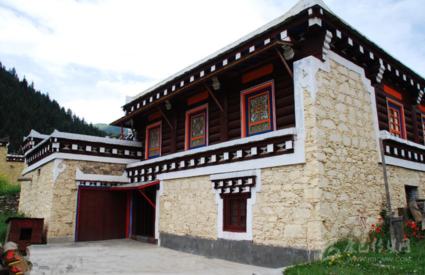 藏民族是一個崇尚白色的民族。因?yàn)殡x太陽更近,藏民族引以自豪的美就來自太陽。在川西雪域高原的藍(lán)天下,白色被認(rèn)為是最吉祥的顏色,是純潔的象征,善意的表示:白色的哈達(dá)獻(xiàn)給神靈,白色的右旋海螺被視為圣物,白色的石頭被置放在村野田間……無論是城市還是農(nóng)牧區(qū),人們生活中許多事物都與白色有關(guān),喜慶時最愛用的顏色也是白色。藏族人甚至用“我的心是白色的”來表現(xiàn)自己誠實(shí)無欺。也因此,白色被廣泛應(yīng)用到與人們生活休戚相關(guān)的建筑裝飾上,并成為建筑裝飾的主色調(diào)。