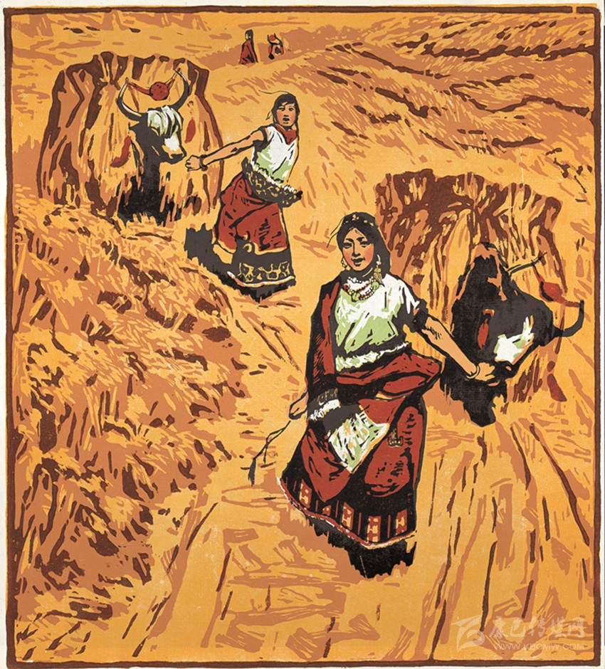版畫(huà)家李煥民曾說(shuō):“在水乳交融的生活中,藏族人民以樸實(shí)、友好、慈愛(ài),哺育了一代代美術(shù)工作者?!迸c40年代進(jìn)藏的前輩大師所不同的是,這批新中國(guó)的畫(huà)家進(jìn)藏后不再以畫(huà)者的角度來(lái)欣賞西藏,而是與藏民同吃、同住、同勞動(dòng),深刻地體會(huì)藏民的生活和精神世界。他們走進(jìn)西藏,就是一次次以平等、學(xué)習(xí)、尊敬的態(tài)度和藏族同胞一起生活、一起唱歌跳舞,所以他們對(duì)西藏人民的感情充滿真摯。當(dāng)然,這也是一個(gè)漫長(zhǎng)且辛苦的過(guò)程。但正是這個(gè)艱辛過(guò)程,使得他們的作品更加真實(shí)和接地氣,他們把民族精神、民族團(tuán)結(jié)、積極向上的時(shí)代魂魄留在他們的作品里,也成為他們藝術(shù)生涯的經(jīng)典之作。