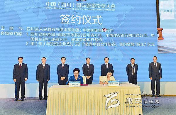 簽約儀式上,省政府與港中旅集團(tuán)、中國國旅集團(tuán)分別簽訂促進(jìn)旅游業(yè)發(fā)展戰(zhàn)略合作協(xié)議;省旅游局與國家開發(fā)銀行四川省分行、中國建設(shè)銀行四川省分行、中國民生銀行成都分行、成都農(nóng)商銀行,分別簽訂支持旅游業(yè)發(fā)展戰(zhàn)略合作協(xié)議;各市(州)與相關(guān)投資企業(yè)簽訂20個旅游項目合作協(xié)議,簽約金額393.7億元。
