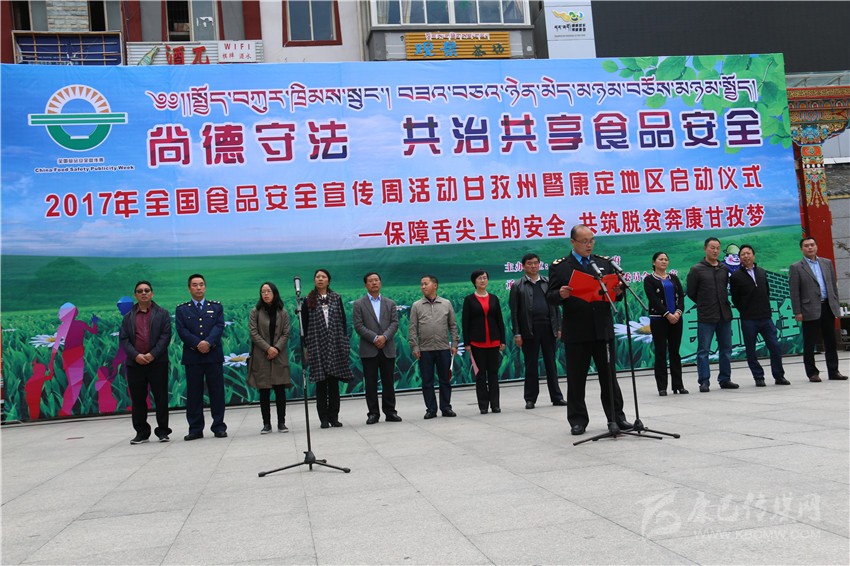 本網訊(記者 宋志勇 文/圖)6月29日,由州人民政府主辦的“2017年全國食品安全宣傳周活動”暨康定地區(qū)啟動儀式在康定舉行,目的是進一步普及安全法律法規(guī)和基本知識,提高公眾的食品安全意識和自我保護能力,進一步強化食品生產經營者的法律意識、責任意識、誠信意識,進一步強化食品安全“政府負總責、監(jiān)管部門各司其責、食品生產經營者是第一責任人”的責任,為構建食品安全長效機制營造良好的氛圍。