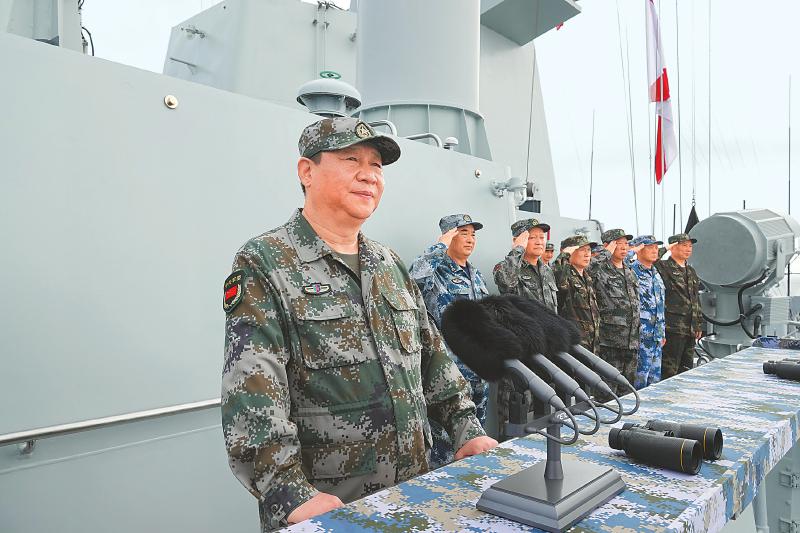 習(xí)近平的檢閱為受閱部隊(duì)開展實(shí)戰(zhàn)化軍事訓(xùn)練注入了強(qiáng)大動力。受閱部隊(duì)帶著黨和人民的重托,迅即開赴訓(xùn)練海域,一場跨區(qū)實(shí)兵演練在海上全面展開。