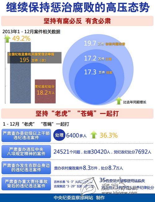 新華網(wǎng)北京1月19日電 中共中央紀委19日發(fā)出通知,要求各級紀檢監(jiān)察機關(guān)學習好、宣傳好、貫徹好、落實好中共中央總書記習近平在中國共產(chǎn)黨第十八屆中央紀律檢查委員會第三次全體會議上的重要講話精神,以深化改革推進黨風廉政建設和反腐敗斗爭,嚴明黨的組織紀律,增強全黨的組織紀律性,以零容忍態(tài)度懲治腐敗,以實際成效取信于民。