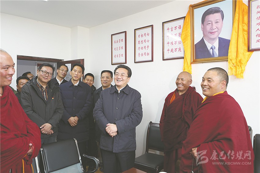 一路翻山越嶺,鄧小剛首先深入駐地營房和基層服務中心,看望一線武警官兵、公安干警、消防隊員和基層黨員干部,帶去省委的關心慰問。他指出,奮戰(zhàn)在雪域高原一線的同志戰(zhàn)嚴寒、斗風雪、抗缺氧,迎難而上、頑強拼搏,為藏區(qū)繁榮發(fā)展長治久安作出了重要貢獻,要堅持嚴管和厚愛相結合,多了解基層一線同志的情況,關心他們的工作生活,聽取工作建議,幫助解決實際困難問題,注重在一線培養(yǎng)鍛煉干部,引導廣大黨員干部立足本職崗位爭做奉獻。在藏傳佛教寺廟和僧舍,鄧小剛同僧尼、信眾深入交心談心,了解他們修行和生活情況,勉勵他們發(fā)揚愛國愛教、守法持戒優(yōu)良傳統(tǒng),多做利益眾生、造福社會的善事好事,發(fā)揮宗教促進社會和諧的積極作用。在聽取州縣工作匯報后,他強調,今年是新中國成立70周年,維護好藏區(qū)和諧穩(wěn)定責任重大,要樹牢“四個意識”,堅定“四個自信”,做到“兩個維護”,全面貫徹黨的宗教工作基本方針,堅持宗教中國化方向和獨立、自主、自辦原則,深入推進藏傳佛教寺廟依法規(guī)范管理,營造安全、規(guī)范、潔凈、有序的修行環(huán)境,積極引導宗教與社會主義社會相適應,深入扎實做好各項工作,促進藏區(qū)繁榮發(fā)展長治久安。