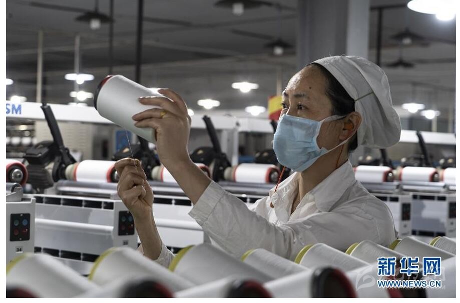 4月19日,在蘆山縣一家紡織企業(yè),工人在檢查產品生產情況。