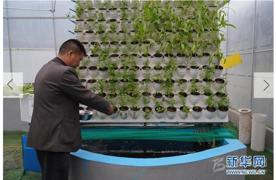 4月19日,在蘆山縣飛仙關鎮(zhèn)禾茂農業(yè)園區(qū),工作人員給魚喂食。這里采取“魚菜共生”的模式,養(yǎng)魚和種菜的水通過過濾系統實現循環(huán)利用。