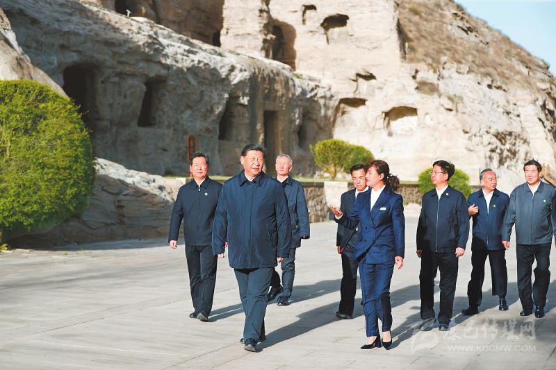 傍晚時分,習近平來到云岡石窟考察。云岡石窟始建于1500多年前,是中外文化、中國少數(shù)民族文化和中原文化、佛教藝術與石刻藝術相融合的一座文化藝術寶庫。習近平仔細察看雕塑、壁畫,不時向工作人員詢問石窟歷史文化遺產(chǎn)保護等情況。他強調(diào),云岡石窟是世界文化遺產(chǎn),保護好云岡石窟,不僅具有中國意義,而且具有世界意義。歷史文化遺產(chǎn)是不可再生、不可替代的寶貴資源,要始終把保護放在第一位。發(fā)展旅游要以保護為前提,不能過度商業(yè)化,讓旅游成為人們感悟中華文化、增強文化自信的過程。要深入挖掘云岡石窟蘊含的各民族交往交流交融的歷史內(nèi)涵,增強中華民族共同體意識。游客們看到總書記,紛紛高呼:“總書記好!”習近平向大家揮手致意,并叮囑景區(qū)工作人員在常態(tài)化疫情防控下要加強引導、控制人流,避免因大規(guī)模人員聚集引發(fā)疫情復燃。