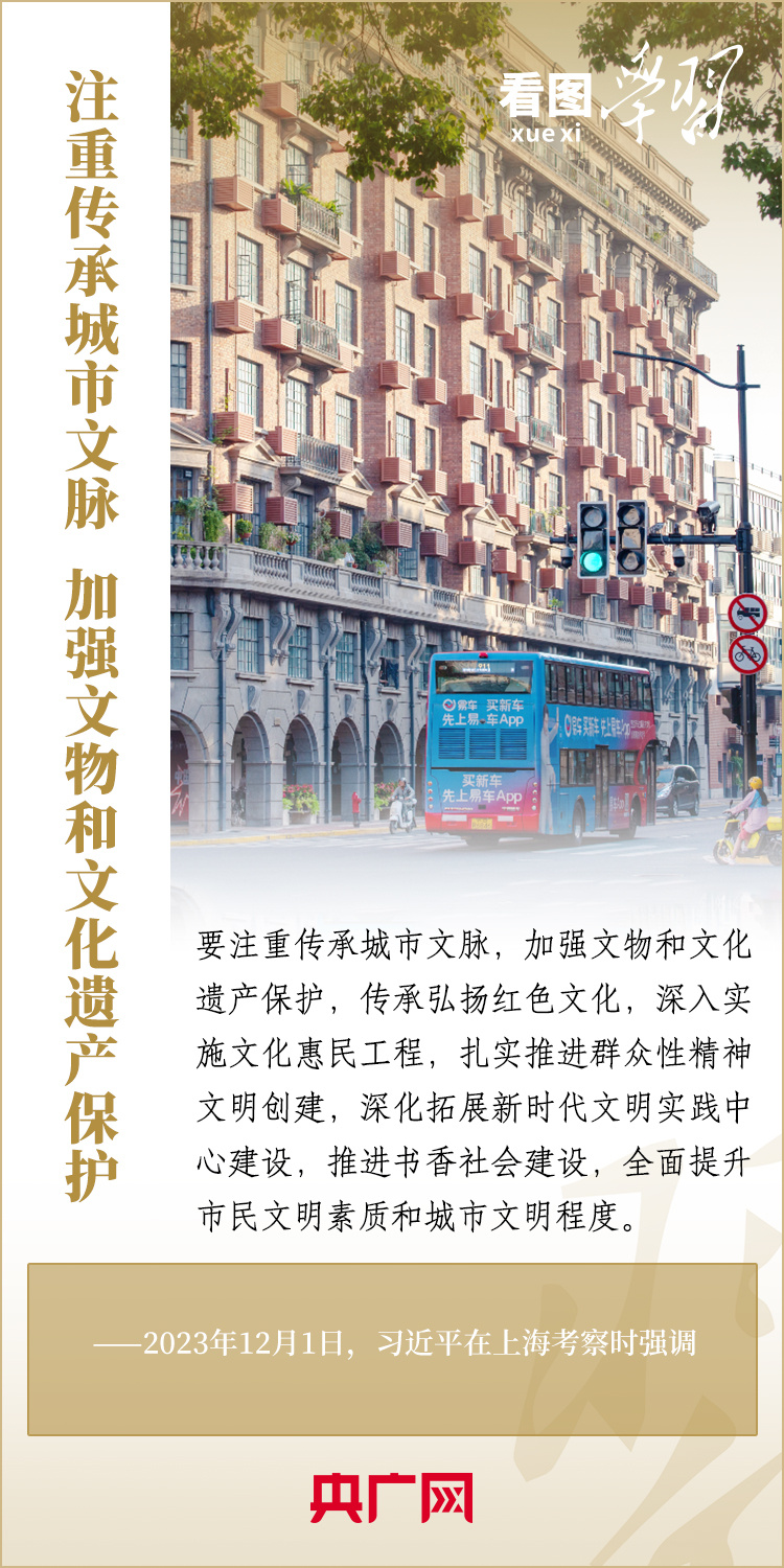 歷史是一座城市的記憶,文化是一座城市的靈魂。守護(hù)城市的歷史文化,就是守護(hù)城市的生命力。習(xí)近平總書記在歷次國(guó)內(nèi)考察中多次作出深刻闡述。近日,總書記在上??疾鞎r(shí),要求上海加快建成具有世界影響力的社會(huì)主義現(xiàn)代化國(guó)際大都市,并強(qiáng)調(diào)上海要注重傳承城市文脈,加強(qiáng)文物和文化遺產(chǎn)保護(hù)。一起來學(xué)習(xí)!