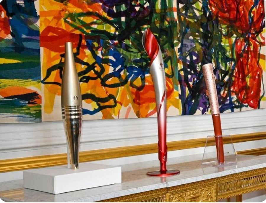 ??在法國(guó)愛(ài)麗舍宮一層肖像廳,三支奧運(yùn)火炬并排而立,格外引人注目。這是中法兩國(guó)元首夫婦互贈(zèng)禮品之一。