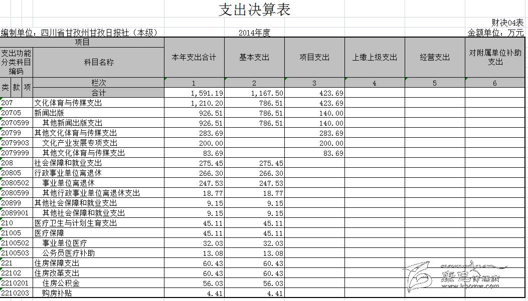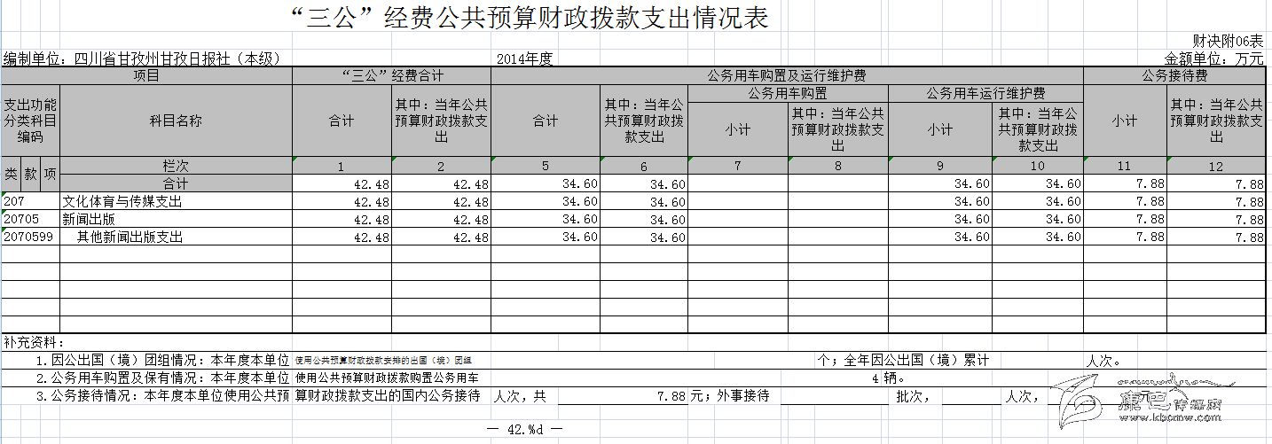甘孜日?qǐng)?bào)社2014年決算