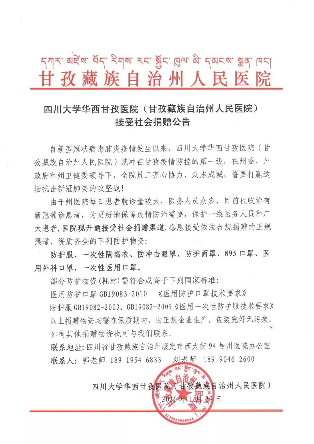由于州醫(yī)院每日患者就診量較大,醫(yī)務(wù)人員眾多,目前也收治有新冠確診患者,為更好地保障疫情防治需要,保護一線醫(yī)務(wù)人員和廣大患者, 醫(yī)院現(xiàn)開通接受社會捐贈渠道, 感恩接受依法合規(guī)捐贈的正規(guī)渠道、資質(zhì)齊全的下列防護物資: