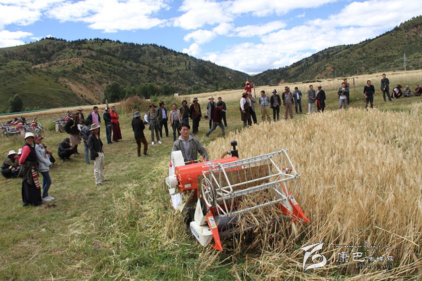 小型聯(lián)合收割機(jī)開(kāi)進(jìn)理塘高海拔鄉(xiāng)村