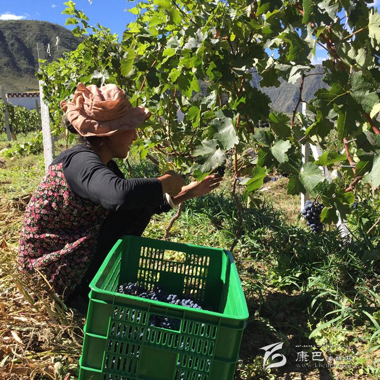 丹巴農家女在采摘釀酒葡萄。