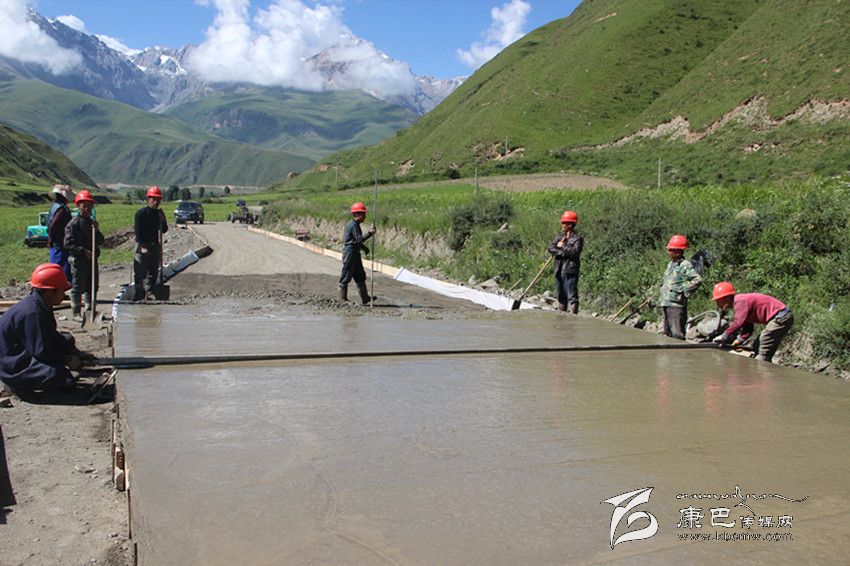 鄉(xiāng)城縣鄉(xiāng)村公路施工現(xiàn)場(chǎng)。