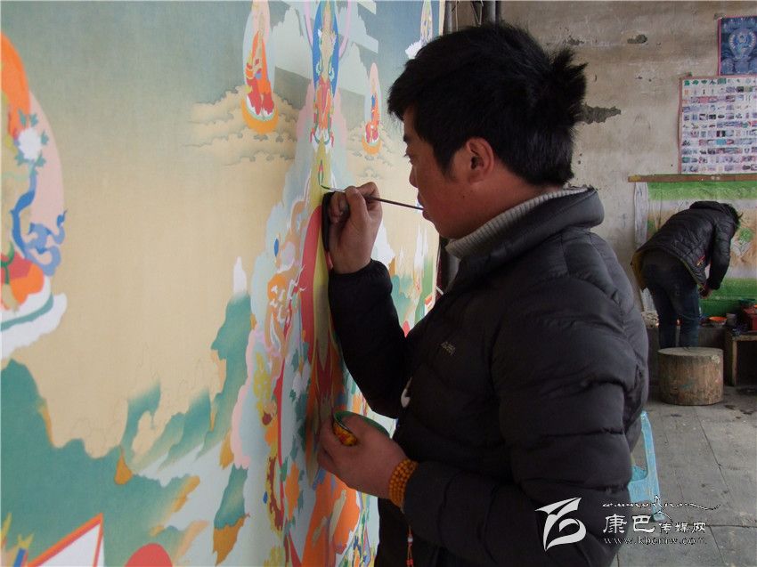 3月18日,在德格縣達(dá)馬鄉(xiāng)一間不起眼的藏族民居里,10多個(gè)青年農(nóng)民正在師傅澤批的精心指點(diǎn)下,學(xué)習(xí)唐卡繪畫(huà)技術(shù)。