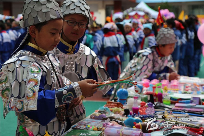 活動現(xiàn)場,各班各出奇招推銷商品,為了吸引顧客,有的班級設(shè)計(jì)了具有本班特色的口號、宣傳牌;有的班級學(xué)生還裝扮成“兵馬俑”現(xiàn)場表演吸引顧客;有的在展位前進(jìn)行舞蹈、歌唱表演;還有的現(xiàn)場流動兜售……吸引了一批又一批顧客前來購買,吆喝聲、討價(jià)還價(jià)聲一浪高過一浪。