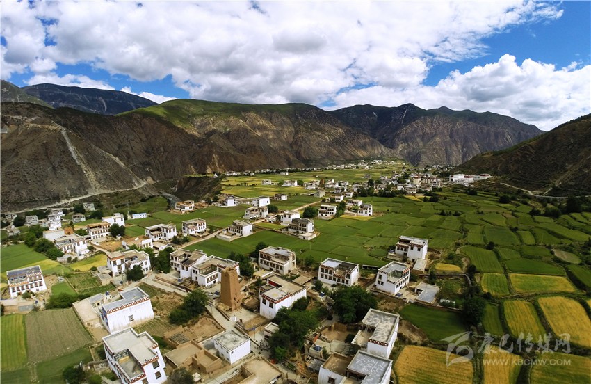 筆者來(lái)到青麥鄉(xiāng)木差村,彎彎曲曲的繞村路,沿著一棟棟獨(dú)具高原特色的藏族新居蜿蜒,塊塊農(nóng)田如翡翠般點(diǎn)綴在白色藏房之間,好一幅“村中田、田中村”的美景。