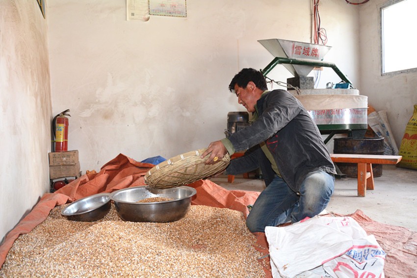 事實(shí)上,小作坊的準(zhǔn)確名稱(chēng)是仁果下村電磨坊合作社,屬于村里的集體經(jīng)濟(jì),廠房的建設(shè)、機(jī)器的購(gòu)買(mǎi)都來(lái)源于扶貧專(zhuān)項(xiàng)資金。建成后,合作社提供崗位,讓村里的貧困戶(hù)來(lái)操作運(yùn)營(yíng)。于是,洛桑降措成為了這里的“主人”。