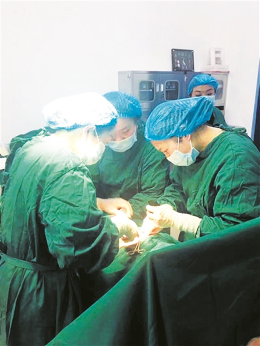 曾德玲(右一)正在做手術(shù)。