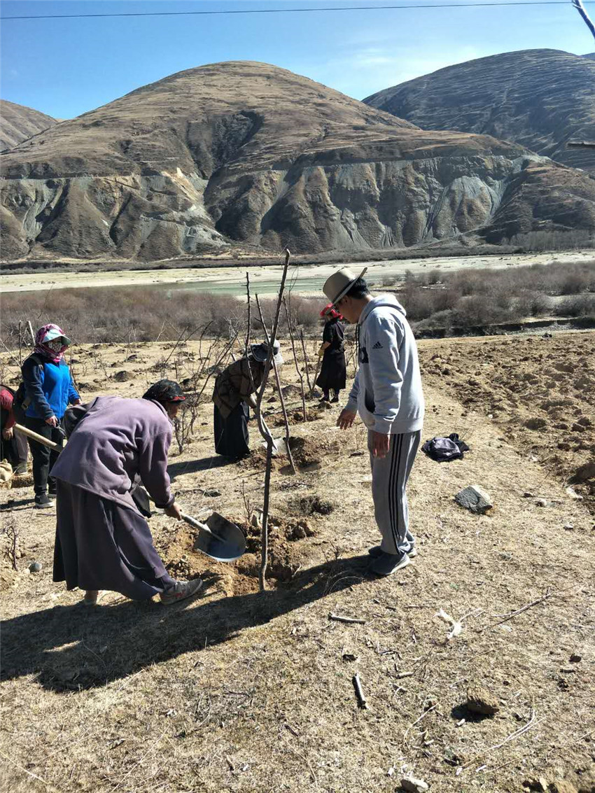 4月,正是高原植樹(shù)栽花的好時(shí)節(jié),溫暖的陽(yáng)光把鮮水河兩岸照耀得一片金黃,斯木鎮(zhèn)俄米村的30多位村民在早晨的陽(yáng)光下熱火朝天地栽著種根徑超過(guò)0.05米的5年樹(shù)齡、高達(dá)2米的杏樹(shù),有人用鋤頭清坑,有人用鐵鏟培土,有人躬身用臉盆澆水,從青海移栽到爐霍的杏樹(shù),將在明年的今天為爐霍帶來(lái)杏花的海洋。