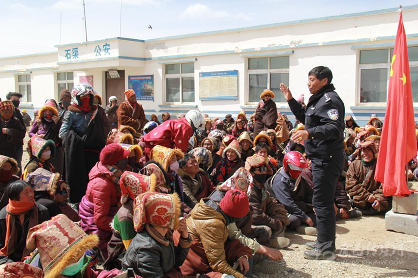 石渠縣公安局向農(nóng)牧民講解掃黑除惡相關知識。
