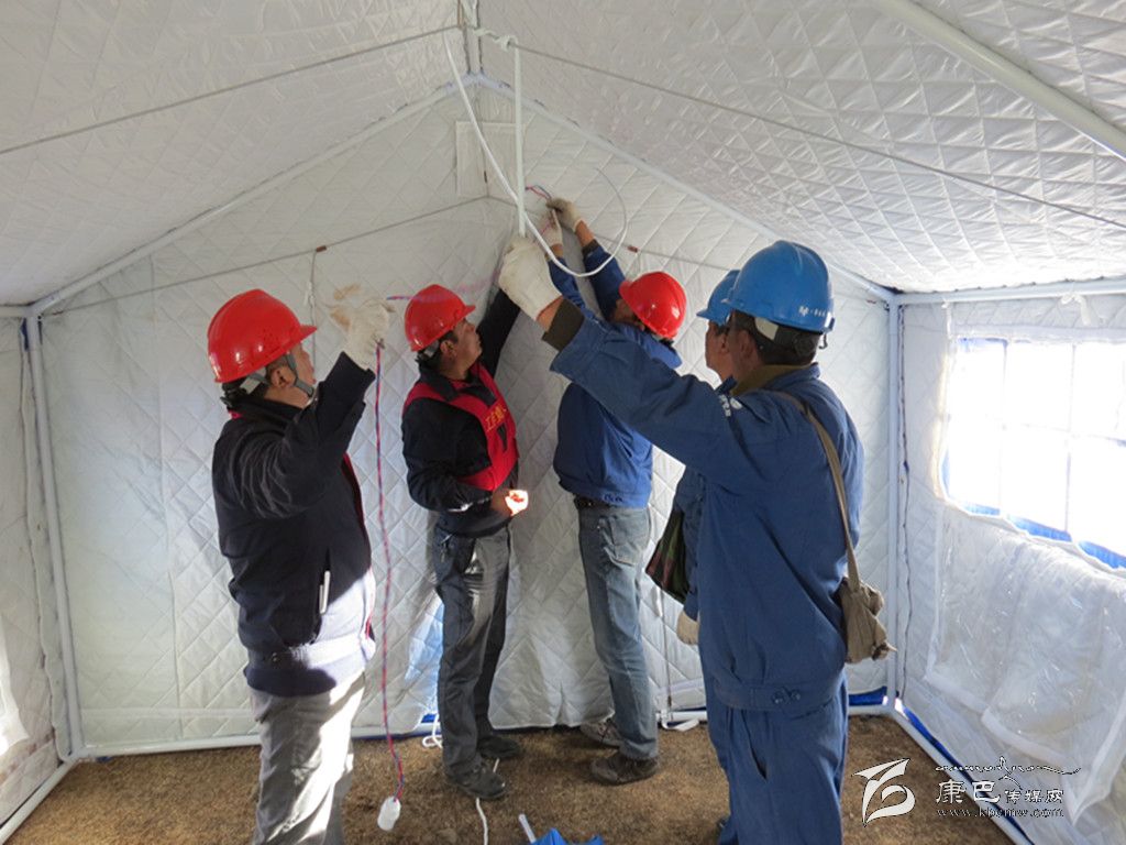 奪拉二村有4個(gè)變壓器臺(tái)區(qū),其中2個(gè)臺(tái)區(qū)為人員較多的木雅祖慶學(xué)校,地震使學(xué)校住宿樓變?yōu)槲7浚=?000名學(xué)生轉(zhuǎn)移至學(xué)校空地上的安置點(diǎn)。為了讓安置點(diǎn)內(nèi)的受災(zāi)師生和應(yīng)急指揮中心盡快用上電,黨員突擊搶險(xiǎn)小分隊(duì)不僅要在安置點(diǎn)迅速安裝應(yīng)急照明設(shè)施,同時(shí)還要從圍墻和學(xué)校食堂的樓頂上重新布放近3段2公里長(zhǎng)的臨時(shí)電源線。學(xué)校圍墻因地震而搖搖欲墜,稍微用點(diǎn)力,墻、磚塊或水泥就會(huì)掉下來,面臨這一難題,公司黨總支沉著應(yīng)對(duì),迅速組織塔公供電所與新都橋供電所的黨員干部趕往震中,同時(shí)安排其余供電所的黨員干部迅速增援。先期到達(dá)的救援人員在余震不斷發(fā)生的情況下,對(duì)受損供電設(shè)備及線路進(jìn)行了緊急處理;在后期人員趕到后,公司黨總支迅速研究制定工作方案,科學(xué)分工:第一組黨員突擊搶險(xiǎn)隊(duì)負(fù)責(zé)隱患排查,第二組黨員突擊搶險(xiǎn)隊(duì)負(fù)責(zé)電線布放,第三組黨員突擊搶險(xiǎn)隊(duì)負(fù)責(zé)救災(zāi)帳篷的照明安裝。在三個(gè)小組隊(duì)員的共同努力下,用近三個(gè)小時(shí)的時(shí)間就解決了應(yīng)急指揮中心、醫(yī)療隊(duì)和臨時(shí)安置點(diǎn)的照明安裝這一難題。