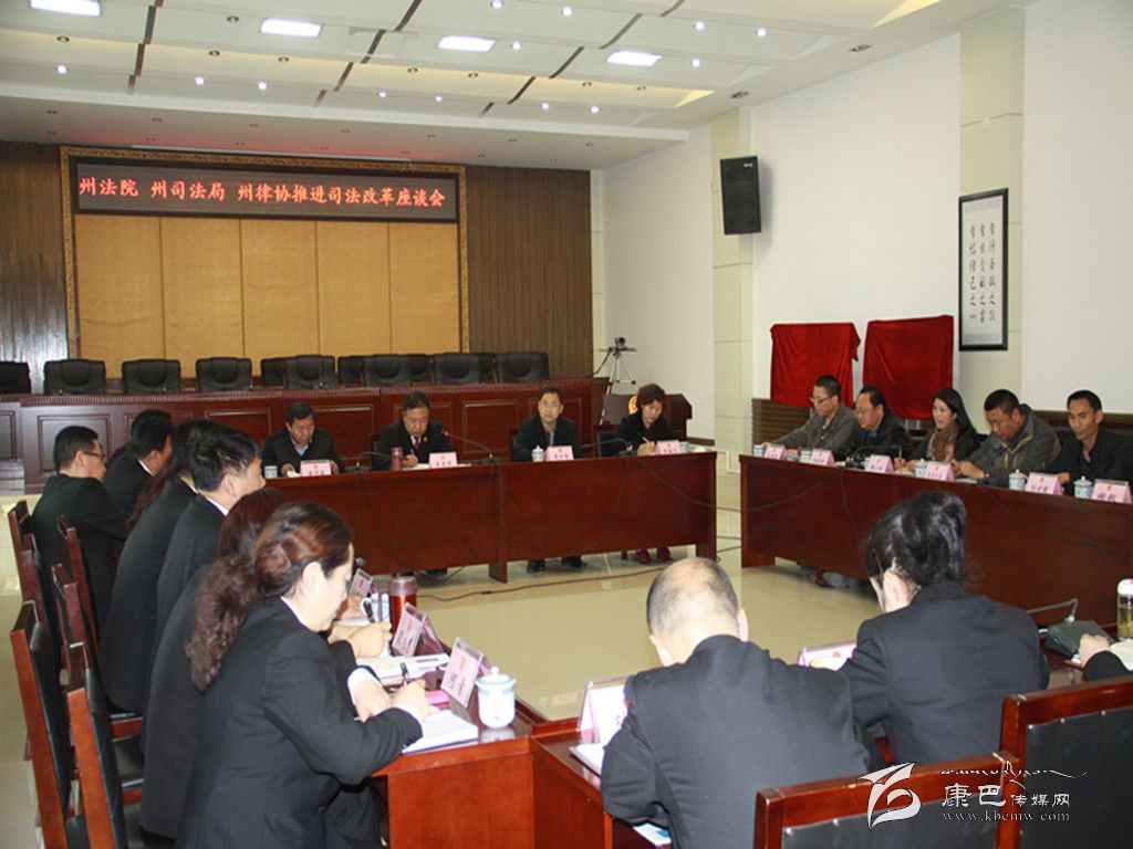 本網(wǎng)訊(局辦文/圖)近日,州司法局、州律師協(xié)會(huì)與州中級(jí)人民法院在康定召開(kāi)了推進(jìn)司法改革座談會(huì)。
