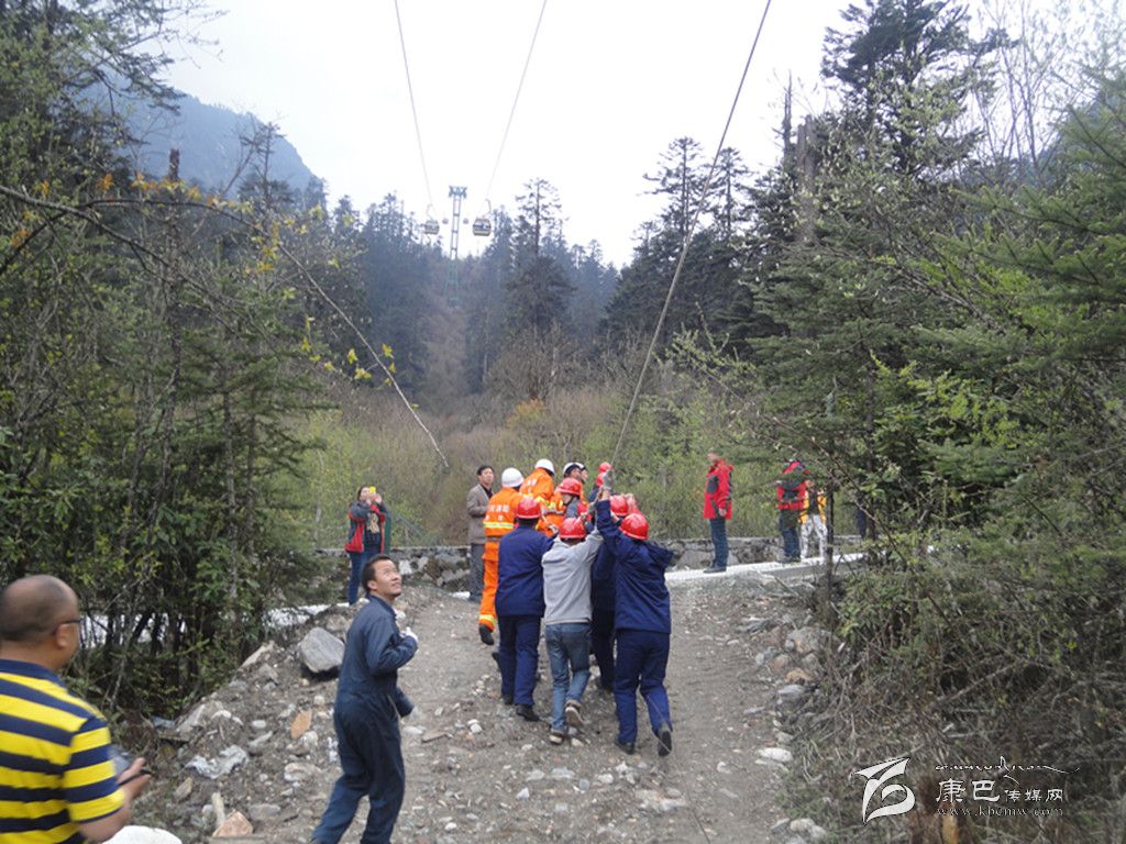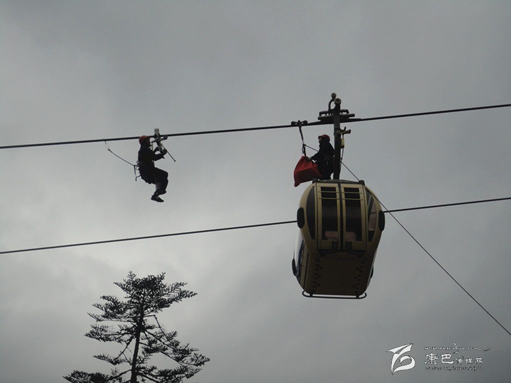應(yīng)急演練活動是模擬索道發(fā)生脫索故障,開展人工救護(hù)應(yīng)急訓(xùn)練。在演練活動中,海螺溝客運(yùn)索道出現(xiàn)故障不能運(yùn)轉(zhuǎn),在1C支架和2#支架之間,兩個車廂共有三名游客滯留空中。海螺溝旅游索道公司立即啟動應(yīng)急預(yù)案,救護(hù)總指揮下達(dá)救援指令。后勤組成員對著車廂喊話,穩(wěn)定游客情緒。救護(hù)小組全體人員,安全、有序、迅速到達(dá)各自崗位,地面工作人員與空中救援人員相互配合,同時密切注意被困乘客的安全情況,正確操作各項程序,僅用半個小時就將被困乘客送到地面,安全完成營救。地面輔助救護(hù)人員立即對被營救人員進(jìn)行現(xiàn)場檢查和救治,保障了被營救人員的生命安全,應(yīng)急演練活動圓滿完成。