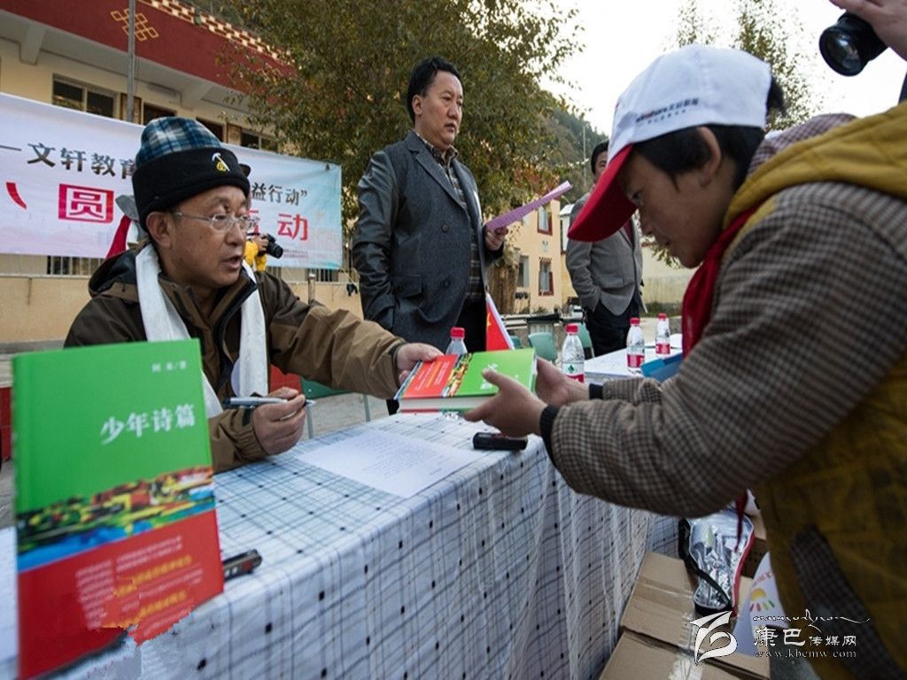 新華網(wǎng)四川頻道10月15日電(記者 江宏景)14日,文軒教育“太陽(yáng)星公益行動(dòng)”2015村小圓夢(mèng)活動(dòng)來(lái)到甘孜州新龍縣樂(lè)安小學(xué),知名作家、四川省作協(xié)主席阿來(lái)為師生們發(fā)表了勵(lì)志演講;新華文軒、四川教育報(bào)刊社等單位向?qū)W校捐贈(zèng)了圖書(shū)、報(bào)刊、文化用品、體育器材等物品;部分參與活動(dòng)的愛(ài)心人士還熱情捐款捐物。組委會(huì)還專門(mén)邀請(qǐng)心理咨詢專家對(duì)學(xué)生進(jìn)行心理成長(zhǎng)輔導(dǎo),熱心志愿者與師生進(jìn)行了閱讀分享活動(dòng)。