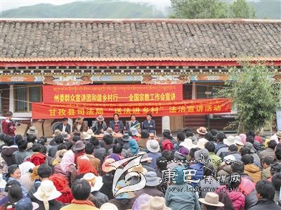 通過建好“宗教寺廟、鄉(xiāng)村牧場(chǎng)、中小學(xué)校”三大宣傳基地,開展個(gè)性化宣傳,我州逐步形成了普法教育由灌輸型向交互型轉(zhuǎn)變,全面構(gòu)建起了一個(gè)由學(xué)生群體、僧尼群體進(jìn)而輻射到全社會(huì)的法治宣傳新網(wǎng)絡(luò)。在法治春雨的澆灌下,孕育和新生了大量的法治“干細(xì)胞”,使雪域甘孜的“法治味”愈加濃厚。